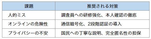 今後は「紙の調査票の完全廃止」「本人認証付きオンライン回答の義務化」なども検討されるべきでしょう。